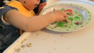 必要な発達過程ですが、食べ物の中に手をぐちゃっと突っ込んでかき回したり、こねたり、投げ捨てたりされるのでママはたまりません。
